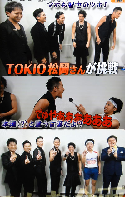 「シューイチ」毎回、TOKIOに係わってくれるから楽しみにしてたのに、コレだけ!?って感じで終わっちゃって(´・c_・` )ガッカリでした。でも、智也の大爆笑を見れて、マボに感謝!(*'ー'*)♪リーダーもツボだけど、マボもツボだよね~、智也の。叫んでるタレントさんの声にビビりながら計測器を持ってる芸人さんがオカシイ。それにしても声の大きさを計るより、他の方法がなかったんですかねぇ?…っていうか、普通にインタビューでいいじゃん!