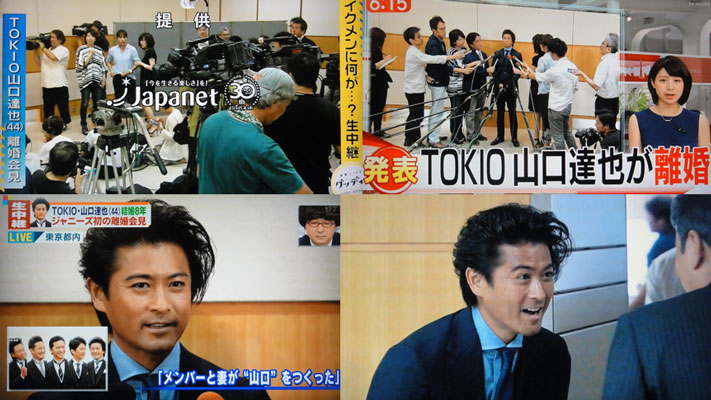 8年前、TOKIOのコンサートで結婚の報告をさせてもらって、で、それ以来8年間で、離婚することになって、あの、やっぱり、ここ、ファンにも、ファンの方も、やっぱり、気持ちを振り回してしまうような事をしてしまって、申し訳ないなと思っていますが、あの、結婚してからも、スゴく、ファンの皆さん、もちろん、視聴者の皆さんとか、山口達也を支持してくれる全ての人が、応援してくれて、今に至っているので、おそらく、また、明日になっても、この発表があっても、何も変わらない山口達也が、え~、いるので、これからも、うん、変わらず、応援してもらいたいなと思いますね。で、ちょっと、LIVEが無かったので、TOKIOのファンの皆さんに、直接、伝えることが出来なかったんですけども、こういう場を設けて頂いたので、はい、ココで報告させて頂きました。これからも宜しくお願いします。早く、一日でも早く、ステージに立ってるTOKIOに逢わせてよ~!「変わらない」という、達ちゃんを確認させてよー!達ちゃんに触れて、優しい笑顔を贈る智也に逢わせてよー!