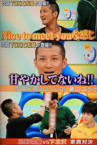 先週の予告で「TOKIO”ガチトーク”」って出てたから、期待してたのに、テレビジョンが、かなりガッカリ。ページ1/4弱で、5ショットも小さいし。収穫は、10/26のトキカケのゲストが、宮沢りえっていう事。TOKIOの番組に初出演という事で、メンバーとのエピソードが語られるみたいだから、TYTDの事も出るかもね~♪…って、気が早いっすね(;^_^A …来週はジョンもガイドもマボが表紙で、記事もそれなりにあるだろうから、メンバーの話が出てる事を願ってます。…2週間も飛ばしちゃうなら、1時間未公開SPでも、どっかでやってくれよぉ~!