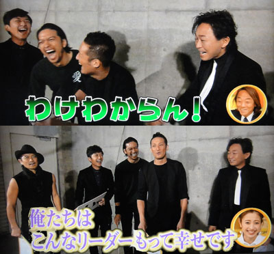今回は、いろいろ楽しかったなぁ~!最近、ゆっちがインタビュアーで来ないのは残念だけど、ベスアーの現場じゃ、無理もないもんね。一応、曲について、智也に喋らせてくれたし、他局だけど、マボドラマの事も言ってくれたから、太一も加わって(?)ツインタワーのLOVE2っぷりも観れたし♪何より、リーダーいじって、爆笑してる4人っていうTOKIOが、ホントに平和で、嬉しくなっちゃいました。マボが(笑いすぎて)涙を溜めながら「オレたちはね、こんなリーダーをもって、幸せです」って愛を語っちゃってるのは、智也が作った『愛!wanna be with you...』のチカラだ!