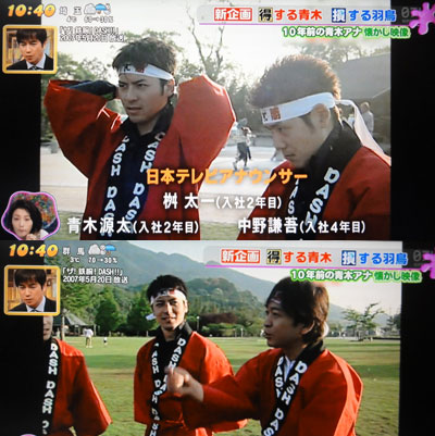 「PON!」で、青木アナの地上波初登場という映像が流れたけど、これが、ナンと、10年前の2007年5月の鉄腕DASH。枡アナも出てるし!っていうか、若い頃の桝アナは、男前だなぁ~!