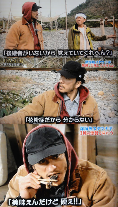 ヌタウナギと知って悲鳴をあげる達ちゃんに、笑ってる智也とか、マボが持つウナギの匂いを嗅ぐ智也とか、智也が嗅いだ後に、嗅いでいる太一との身長差とか、萌えポイントが次々あって。囲炉裏を囲んでいる時に、智也が達ちゃんに、リーダーがアナゴリリースしちゃった事を、お父さんに報告する子供のように、(`ε´)言いつける感じが可愛い~!タヒチに載せた写真で、想像は出来たけど、やっぱり、かなりの重労働で、水路作り以上に、大変だと思うので、ホントに、いろいろ気を付けて、本業としている活動に支障が出ないように、祈るばかり…。