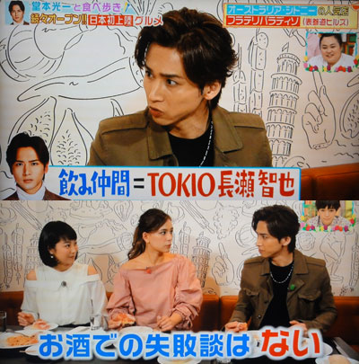 時間がないからと、ザクザク、録画を消してたら、金曜日のZIP!とめざましも消しちゃって。光一がサントラ発売で、インタビューあったんでした。「王様のブランチ」でも、サントラ発売の番宣で、食べ物ロケ。食に興味ない光一がするロケじゃないよね~。スカンピのパスタがアツアツで出されても、一緒にきたコーヒーを先に飲んで「コレ、美味しい~♪」と目、キラキラさせて。コーヒー好きだもんね。でも、お店の人から「(コーヒーも)こだわりあるんですけど、まず、パスタから食べて欲しいんですけど…」って言われちゃってるし!揚げパンの上に生ハムが乗ってるヤツ食べて「これもう、ワインやん」というので、「飲み仲間はいらっしゃいますか?」と訊かれて「長瀬は。TOKIOのね。昔から、仲がイイので」と。だけど「お酒での失敗談は、ないっ!」そうです。もっといろいろ聴きたかったですよ。ただでさえ、ロケで行った場所は、後で、スゴいことになるのに、今回はNew Openのお店とか、だから、更にスゴそう。智也も、ドラマの番宣で、いろんなとこ、行ってくれるといいなぁ~。後から行く楽しみが増えるからね。