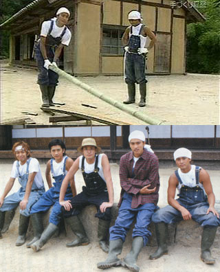 そんな気持ちをアゲる為にもと、ダメ元でロケ現場を覗きに行ってみました。建物入口前の歩道に渡部篤郎さんが立ってて、ガードレールに座ってる数人とタバコ談笑中。渡部さんの後ろを通りながら、彼をチラッと見て、通り過ぎ、「車の中にいるのかな?」なんて言いながら少し先で待機。すると、通りがかりのお姉さんが、興奮気味に「長瀬くんですよね!?あれ、長瀬くんですよね?TOKIOの」って何故か私たちに訴える。(゜∇゜ ;)エッ!?と一瞬固まる私たち。そして、じーっ見たら、見覚えのある笑顔…。…Σ(゚ロ゚;)!智也だぁ!顔、真っ黒!髪、短っ!ヒゲなし(多分)!ナンと、私たち、智也がガードレールに座って渡部さんと喋ってるのに気付かず、思いっきり無視して通り過ぎちゃった(;^_^A !黒いTシャツにジーンズ、紐を通してないスニーカー。いつもの恰好でした。そうと気付いたら、一気に動悸激しくなり、落ち着かなくなりました!そうだよ、渡部さんが外にいるのに、智也が車の中で待機って事はないよねぇ~!もうバカっ!バカっ!スタッフが飲み物を買ってくると、それを受け取り、すかさず渡部さんへ差し出す智也。さすがっ!良く見えなかったけど、多分缶コーヒー。相変わらずタバコは減らないなぁ…。間もなく、ロケバス到着すると、中から、エンジ?赤?のシャツとかスーツもあるのかな?衣装を運び出す崇志くん。智也も一緒に中へ。校庭がチラッと見える場所で見てても暑いし、撮影風景がちゃんと見れるワケでもないので、帰ろうと。