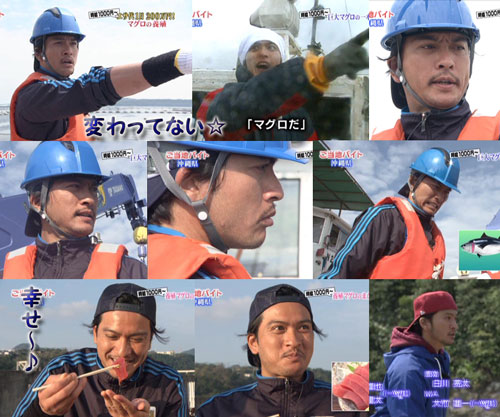 続けてマグロっ!リーダーが言うならともかく、智也はナニワの商人なみに金勘定しちゃうのぉ?お金のこと、結構口にするけどね、太一同様。計算結果に反応するO型さそり座2名は、やっぱり似た者同士!?養殖といっても、マグロはさすがにスケールが違うのね~。大砲で飛ばされるサバがシュールでした。船上での智也が、イチイチ、カッコよくて、見惚れます…。キリリの表情がたまりません♪ でも、さばかれるマグロに、うわってなってるけど、智也もダメなんだっけ?こういうの。達ちゃんが意外とダメっていうのは知ってますが。それでも、心臓をパクっていけるからなぁ。7年間格闘した思い出は、やっぱり強烈なんだろうな。大しけで船から落ちそうになったこともあるんだっけ。そんな事も思い出してたのかなぁ?ま、そんな感慨深くなるほどの時間はないくらい、あっさり終了~でしたが。マグロを見つめる智也の笑顔が、とってもとっても幸せで、嬉しいです。