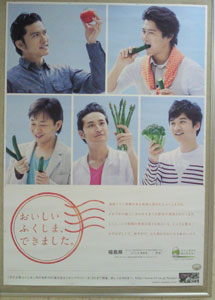 今日は、朝、乗り込んだ電車の中吊りに、TOKIO発見~♪たった、4駅だけど、じーっとガン見。トマトを持ってる指に、見つめる瞳に、微笑む唇に、もう目が離せないです。そして、ナンと帰りにも、乗換駅の改札入った正面にポスターがっ!コレは中吊りと違って、目線が一緒になるんで、反射しないし、バッチリ撮れます♪…あ、行き交う人々の視線を頑張って無視する必要はありますが(;^_^A アセアセ…。