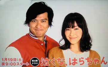 マボが「キッカケはフジテレビ」のポスターを局内で見かけるんだけど、最初判らなかったということで、ポスター現物が登場。確かに判らないかも?!下の方に小さく彼女の名前が出てるので判ったらしい。このポスターの撮影が大変だったようで、姿勢の悪い(って彼女は言ってましたが)ので、このポーズで立つのがツラく、もっと背筋を伸ばしてとか、お尻を突き出してと言われたり、アゴをあげたりと大変だったとこぼれ話。マボがどれどれ、と同じポーズをやってみるが、客席の反応が思ったほどではなかったので、不満顔(っていうか照れてる♪)。智也は智也で「こうやって見たくなるね」と屈んで、スカートの中を覗く仕草ヾ(- -;)!もちろんマボの愛のムチ(頭をペシッと!)が入りました(^w^)! 何故この仕事を引き受けたかと言うと、このキャンペーンのディレクターさん(?)が小さい頃から水前寺さんのファンでテレビの仕事が出来るようになったら一緒に仕事をしたいと、ずーっと前から思ってたってことを、“とーちゃん”(旦那様:指揮者で16、7歳の頃、テナーサックスを吹いていて、有名な曲【忘れた!TOKIOみんなも知らないような昔の曲】のサックスが彼だったと水前寺さんの自慢アリ!)が聞いて感動して、やりなさい!ってことになり、引き受けたそう。第一弾のCMは池袋の駅前で着流しでの撮影だったから、恥ずかしかったそうです。