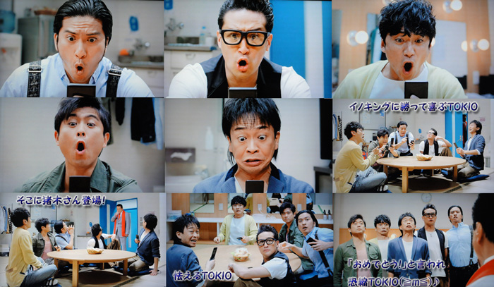プシューッとしたら、出てくるTOKIO戦隊。それぞれが違う形で蚊と戦うんだけど、マボは殺陣のようにダイナミックだし、達ちゃんは足からビーム、智也はデッカイ手からビーム、そして太一は目と口からビーム。コレ、ホラーじゃん!リーダーがすーっと上がってくるのがカッコイイ~って思ったら、デッカイ手の形したビームで蚊をパシッと挟む、原始的(?)攻撃。最後の「フマキラー!」というショット、一瞬、最新版って判らない、ここ数年の定番。キリリ智也、大好物です♪