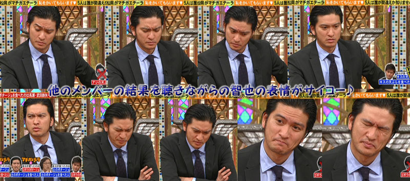 「5LDK」はトークの部分を書くことより、マチガエテーラの方が比率が大きくなってきたなぁ~。時間的にも割合が増えてるよね?まぁ、マチガエテーラでもゲストと軽くトークしてるもんね。毎回同じようだと思いつつも、智也のリアクションを切り取りたくなっちゃって、キャプチャが止まらないです。ズラッと並べて、(*^m^*) ムフッとしちゃってます。圧倒的に智也が映されてるもん!まぁ、自信満々に答えるマボも即座に否定され、おどおど…ってなっちゃうのも、当って喜ぶ可愛いマボも楽しいんだけどね。そんなマボは、今、斗真が映画のプロモでアチコチの番組に出てるから、セットになってるかのように、モノマネが披露されてます(って、しやがれ、の他には見てないけど)(* ̄m ̄)プッ。