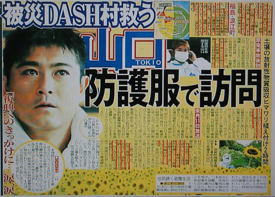 朝、朝刊を見てビックリした!( ̄△ ̄;)エッ・・?いつの間にこんなことをしてたんだ…。その後、各記事を読んで、達ちゃんの熱い思いに、そして大粒の涙をこぼしたという言葉に(┯_┯) ウルウル。そうしたら、紙面を「スッキリ!」で紹介してて、目に涙をためた達ちゃん見たら、落涙。TOKIO・山口、防護服着て被災の「DASH村」訪問
