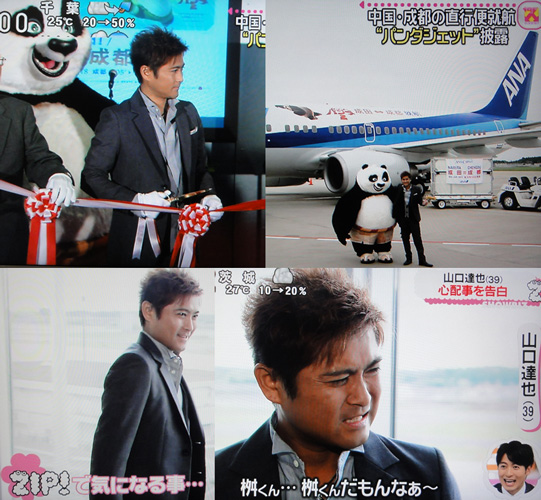TOKIOの山口達也が19日、千葉・成田国際空港でANA成田-成都(せいと)直行便の就航式典のテープカットを行った。日本の成田とパンダの故郷として知られる中国・西都市を結ぶ初の直行便。米映画会社ドリームワークスの映画『カンフー・パンダ2』の主人公“ポー”をイメージキャラクターにしたラッピングジェットも初披露された。ポーの日本語吹き替え声優を務める山口は「ポーの描かれた飛行機を見るのが楽しみだったんです! 自分も一度は乗りたいです!!」と興奮気味に話した。
