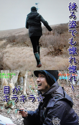 道草企画、時間にしては短いOAだったけど、ツボ満載だね~。まずはご挨拶と思ったワンコにガブリ。耳をぴったり倒したから、危ないなぁと思ったんだけど、その通りになっちゃったね。でもさすが、幼少時に噛まれてもそれがトラウマにならなかった智也、動じないね~。「メチャメチャ怒られたよ~!( ̄∇ ̄*)ゞ」てなもんです。ワイルドな智也の、更に上を行く定男さん。カッコいいね~!智也が大好きな感じの人だよね!?馬を追いかけて草原を走る智也の姿煮、【…じゃない!リーダーがヘンなこと書くからっ!】姿にメロメロですよ♪そして「あの白いのがいい」鼻声プラス甘い声で、更にトロケます(*´ェ`*)ポッ♥コレはソーラーカーに代わるものになっていくの?始まりは智也と太一だけど、今後、メンバー全員が連れていくのかなぁ?車と違ってテクテク道を歩いて行くのは、ロケする時は大変なんじゃないかと…。