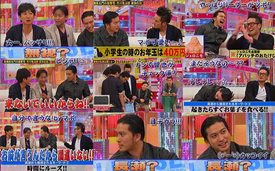なので、動画が更新されて、そっちが盛り上がったから、もう5LDKのキャプチャどころじゃなくなっちゃった!たまらなーい!リハ風景、大好物!!!!リハ室に一番乗りのリーダー、シブい!続いて智也が登場でビックリ!「今日は一日お願いします!」と元気に挨拶して、お辞儀。ナンなの~!もうカッコイイし、可愛いし。続いての達ちゃんも、「よろしくお願いします!」と礼儀正しく挨拶。…ナンだ、フザけてたのか…。BGMが流れちゃって、リハ音が聴けないのが残念だけど、もう釘付け。そして、(*゜・゜)ンッ?リーダーがリードボーカル!?リーダー以外、歌ってないもんね。ということは、リーダーのボーカル曲がセットリストにあるのね。そうか、またバックミュージシャンに徹するギタリスト智也が見れるのかしら♪ カッコいいなぁ~と見てたら、やっぱり、さすがTOKIO。ハズしません。キャメラに群がる5人…(゜m゜*)プッ。6分以上もあるのに、もう終わり?と思ったら、また「OVER 30's WORLD」のライブ映像。あのぉ~、こんなグチャグチャで、音も割れ割れで、(゜∇゜ ;)エッ!?密録映像?って思えるヒドイもん、流していいの?いい加減、画面サイズもワイドにして下さいね。…名古屋では立派な機材で撮影してたのにな…。