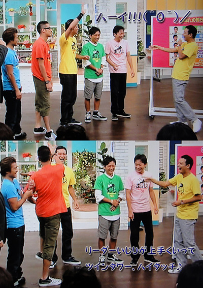 今日の番宣は智也と太一のおバカコンビ。結局、汐留には行きませんでしたが、番宣チェックしてみると、楽しそうな2人がいて、嬉しかった~♪朝からテンション高いね!朝強いハズの太一の顔がズームではむくんでたようですけど?智也はやっぱり、髪の毛切ってたね。まだガーっとチェックしただけなんで、詳しく見れてないけど、会社でワンセグで見ていた、ズームが面白かったかなぁ~♪バードが。太一が来て嬉しいのは判るけど、彼ら以上にはしゃいでたよね!?PON!で、スィーツをパクパク食べる智也と、小豆入ってるから、ゼリーの部分だけ食べて、置いちゃってる太一(* ̄m ̄)。DON!でもジャニーズ扱いされない太一に、恐怖映像に、お口ぱっくりの智也。あぁ、嬉し過ぎるよ、こういうの。今日は、この番宣ラッシュの後、5LDKだよね?ずっと太一と一緒だから、智也はのんびり出来てるかな?タヒチのうぬぼれ刑事さんのサングラス、カッコイイ♪