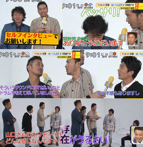 ホントにナンかやらないと気が済まない人たちです。たまらずマボからツッコミ入ってるけど、これもデフォルト(^ー^* )フフ♪そして、「シューイチ!」出演時のお約束、あいうえお作文。前回出演時の映像が出たけど、智也がバリバリ・クロコーチ仕様だったね。新曲「LOVE,HOLIDAY」の魅力を「TOKIO」の5文字を使ってPR。