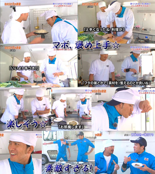 楽しみにしてましたよ、ツインタワーの0円食堂。智也がキッチンカーの運転するというレア映像からでしたね。道の駅に2人が踏み込んだ時の、周りのリアクションが楽しい~!でも、驚くよなぁ、いきなりツインタワーが現れたら。智也一人でも十分破壊力があるのに、同じくデカいマボと一緒だと、パワーアップだよね。…あぁ、うらやましいっ!智也がキュッと背中を伸ばす仕草をしてたけど、また調子が悪いのかな…。2人とも、交渉術には長けちゃってるけど、それぞれのリアクションが楽しいね。マボはタコ入りの麺ゲットで小躍りしてるし、工場の方々へ握手のサービス。嬉しいよねぇ。快く応じてくれるのは。智也はよく「ホンモノですか?」って言われてない?やっぱり現実に会えると思えないからかな?
