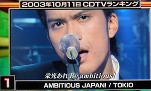 CDTVで「AMBITIOUS JAPAN!」映像。2003年10月11日ランキング1位。智也のギターストラップが短くなったのが、この曲からだっけ。さぁ、今週はMV解禁かな?どんな姿が見れるのか楽しみです♪