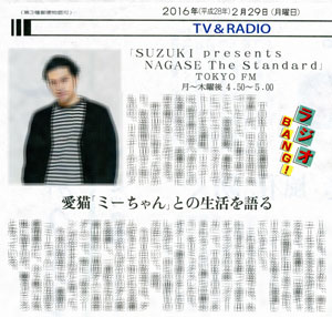 日曜の「よみホット」に全然出してもらえないから、(`ε´)ぶーぶーと文句言ってたら、今日の夕刊に何故か、ナガスタの記事。こうやってラジオ番組を紹介してるコーナーがあるって、初めて気付いた(;^_^A アセアセ・・・。帰宅遅くなると、読まないで、回収袋に入れちゃうことがあるから、危ない、危ない(^ー^* )フフ♪楽しみにして聴いたら、もう、ホント、メロメロですね~。そばに体温があるものがいるって、Zettai、違うもん。そりゃあ、お料理作ってくれたりとか家事してくれる、綺麗なイキモノがいたら、もっといいのかも知れないけど、その反面、言葉を喋るから、難しくなることもあるからね。間違いなく、今、智也を幸せにしているのは、ミーちゃんだなぁ。だから、ちょっとでいいから、お披露目してよぉ~。