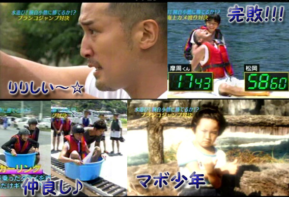 DASHでもマボが大活躍。リーダーが大活躍なのは、もう当たり前(?)だからね。高いトコ苦手なのに、「手が震えてますよ」と子供たちに指摘されながらも、あのブランコは頑張ったね~☆海上カメ渡り、以前、忍者対決(?)した時、華麗に走り抜けてたので、いい線行くかな?と思ったけど、撃沈!対決した摩周くん、イケメンでしたね♪幼少の写真は、10周年パンフに載ってたヤツね。来週はDASH海岸に勢ぞろいですね♪楽しみ~☆