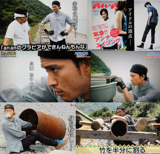 と、妄想が止まらなくなりそう!それにしても、リーダーは、よっぽど、智也に対抗意識があるようで、智也が困った顔になっちゃって。an・an、出すなら、最新版が良かったなぁ~。スーツばっちりの方が、スタイル強調でしょ?智也が真剣に夢中になると、眼差しがするどくなって、その表情が大好きで。一生懸命、やってるのに、ちょーっぴり、バカにされるような扱いが気に入らないけど。奇跡の勾配は、智也だからこその賜物ですから!キリリのホレボレする表情を見せたかと思えば、コレも、智也ならではの、鼻ツッコミ姿も、やっぱり可愛くて、大好き~♪大きな竹を抱える、あどけない表情もたまらないけど、どうも、竹が出てくると、トラウマが…。智也と竹の組み合わせは、今でもドキドキしちゃいます。胸ポッカリの時用に、このリゾラバ編集して持ち歩こうかな…。