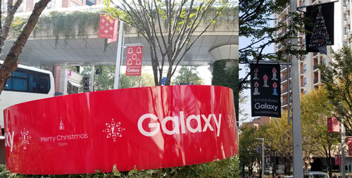 けやき坂に「Galaxy」の旗。今年は「Galaxy」がけやき坂イルミネーションプロデュースみたい。…点灯式、DoCoMoのGalaxy担当(?)の智也を呼んでくれませんかねぇ?六本木の点灯式といえば、Woooの点灯式、めっちゃ、カッコいい~姿だったから、もう一度観たいんですよぉ・・・。