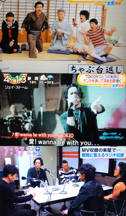 待ちに待った、MV解禁で、「東京ドライブ」「fragile」に続いての女性監督のDirectionという事で、予想外の出来でした。やっぱり、智也がMVにも、関わっているということで、メイキングで、その断片が観れたことが嬉しいです。そうそう、トキステ収録風景も流してるWSあったけど、コレは、収録されていないよね…きっと。MV撮影と一緒という事で、やっぱり、締切前っぽいよね…。楽屋編も、楽しみにしています。「ビビット」で、太一が、「ちゃんとしたバンドでしょ?」「演奏パフォーマンスにも注目して!」とか、智也の作詞作曲で、アレンジがTOKIOって、アピールしてたし、以前より、プロモに積極的??昨日も歌番組の収録したということで、またまた楽しみが増えるんですけど。今回はラジオ番組出演とか、無いのかなぁ?ま、今はナガスタがあるので、いろいろ話が聴けるけど、プロモは、どんどん、やって欲しいって、ホントに思います。明日のプレミアム、5時から会議だから、リアタイできそうもないけど、ハンドマイクで、思いをぶつけて歌うであろうパフォーマンス、とっても期待しちゃう♪