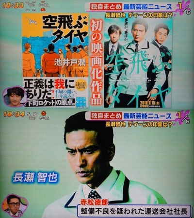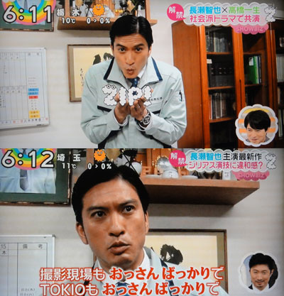 大々的(?)に告知したから、朝からドドーッと来ると思ったんだけど、めざにゅーや、はやドキ、グッドモーニングはスルー…。ナンだよぉ~って思ったけど、その分、「ZIP!」は想定外!撮影時に独自取材してたなんて、初耳ですよ!?嬉しい誤算ですよ!?「じっぷっぷっ!」って、ゞ( ̄∇ ̄;)ヲイヲイ!可愛すぎるじゃないの~!智也は「ZIP!」を、いろいろアレンジしますね~♪スタッフから「長瀬さんは、どっちかっていうと、社会派の作品よりか…」って、ふられて、ニヤってしながら「まぁ、ふざけた…感じの方が多かったかもしれないですね」と。やっぱり、今年は、そっち方面にTryするっていう方向性だったのかなぁ、ごめ愛も含めて。現場が、「おっさんばっかなんですよ」って言ってるけど、智也の現場は、いつもオトコくさい現場だよね?今回はそこに「おっさん化」したっていうことね。でも、智也は、オジサマキラーで、智也自身、居心地良かったんじゃないの~?まぁ、こういう話は、公開近くになってのプロモで聴けるはず!…よね?
