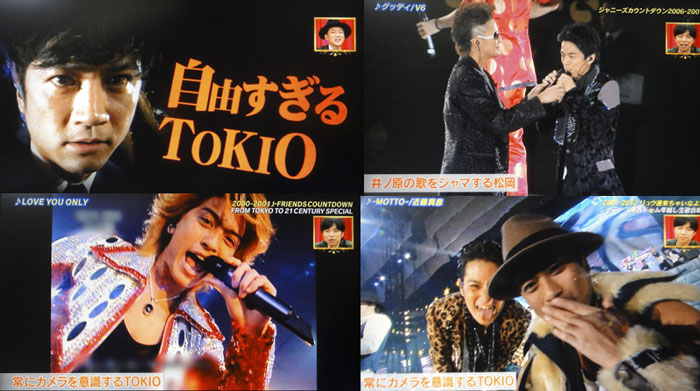 明日のカウコンの事前番組。そういえば、2年ぶりのOAの前にも、こういう番組やってて、その時はメンバー全員だったし、TOKIO、V、KinKiちゃんとか、いろいろなグループのコメントあったよね。カウコン20周年という事で、過去映像が多いし、J-Friendsから始まってるから、TOKIブイで進行するのも、当然ね。出来れば、光一も混ぜて欲しかったけど。まぁ、でも、映像見ながら、アレコレ、喋ってるのが楽しくてね~。ワイプでも声出してるのに、たまに、音声消えるのは、OA出来ない事、喋ってるって事かしら?最初の頃の自分達が映ると「売れようとしてる~!」と、自分でツッコミして、大爆笑。
