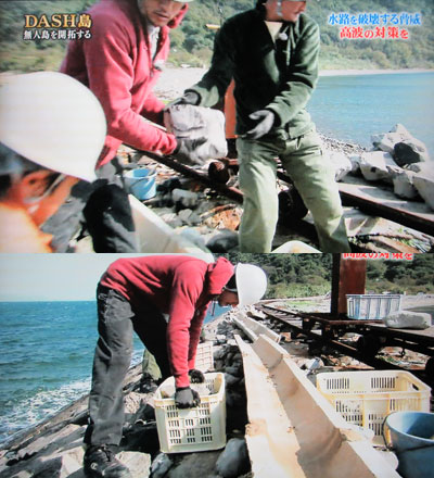 予告でチラッとしか映らなかったので、出演時間は短いかなぁと思ったら、たくさん映ってましたね~♪ツインタワー+達ちゃんという、力仕事には頼もしい布陣でしたが、やっぱり、腰が心配です…。水路を作るときに、あの中洲(?)部分は、波風の影響を必ず受けるって、想定内だよね!?台風とかが来るたびに、こういう事を繰り返していくのは、カンベンだなぁ…。石運びという過酷な作業は、ほどほどにして、こういう、ほんわか、のんびり映像が嬉しいですよ、マジで。リーダー&達ちゃんという、上2人と一緒だから、智也も、とっても穏やかでのびのびしてて。でも、「一攫千金もありますよ」って、悪~い顔して言っちゃうのも、末っ子♪透明なエビ探しで、じーっと見てる姿は、ホントに小学生みたいで。でも、獲ろうとする手は、とっても美しくて。