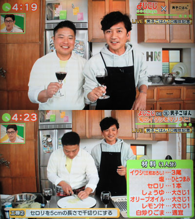 今日は排水管点検の為、午後休暇取得。すぐに終わったので、それから久々のゆーったりした時間。でも、時間があると、いろいろ考えちゃって、哀しくなっちゃって、イヤになっちゃって。で、HDDの整理をしておこうっと思って、TV着けて。あれ?やっくんが出てる、テレ東…あ!録画してないっ!と慌てて録画。ヨカッタ~、間に合いました。スタジオに山田邦子氏がいて、太一がモニタに映った時に「あ、ブンちゃんだ!ブンちゃーん!」「どーもー、お久しぶりです~」そうだね、デビューした頃って、山田邦子のバラエティ番組、出てたよね?!その後も、司会のやっくんと、丁々発止で、面白かったなぁ~。「昨日の長野くんの回で中継繋げればヨカッタんじゃないの?」太一は「いやいや、僕は薬丸さんの回に出たかったんです」(*'ー'*)♪「嬉しいけど、TOKIOとV6の掛け合いが観たかったなぁ~」って、私もですぅ~!今日「男子ごはん」ディスクをフラゲしましたが、特典に生放送仕様(コレ、面白いっ!)というのがあったから、生放送で調理という番宣が出来たのかな?アド街でのイノッチとのからみ(があるのか?無いのか?)楽しみ☆彡