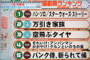昨日から公開の映画も数ある中、ランキングが1コ下がったとはいえ、3位は立派。夏休みに向けて、大作が次々公開になるから、キビシくなるけど、踏ん張って、ロングヒットになって欲しい。この映画が公開されている間は、ナンとか、気持ちも保てて行けると思うから…。