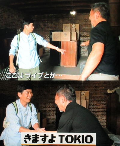 「おさんぽジャパン」は今日から埼玉深谷市。10月初旬から「空飛ぶタイヤ」の上映が始まる映画館があるところですね。ゆるキャラの「ふっかちゃん」はグランプリ上位だから、よく知ってるけど、東京駅舎は主に深谷の煉瓦を使ってるなんて知りませんでした。深谷駅舎も東京駅に似せて作ってあって、素敵♪お散歩中、素敵な煉瓦の蔵を見つけて、中を見せてもらう太一。大正元年に作られた蔵は、「Barとかにしたらいいんじゃないですか?」と提案すると、少し、せりあがってる床を指して、オーナーさんが「ココはライブとか出来そうな感じですよね」と言うと、太一が『LOVE YOU ONLY』BGMに、「ライブ、来ますよ!僕ら」と返すと、オーナーさん、がっつり握手!ほら、アンケートでもあるように、LIVE、待ち望んでるんですよ…。
