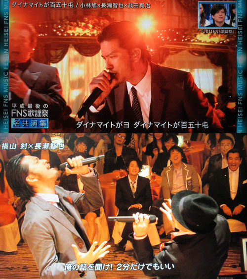 2010年のFNSでは、「ハプニング映像が流れてます~」と、アクシデント(!?)を、CMはさみつつ、客席立たせて、大盛り上がりにしちゃう智也の度胸に感動だし、この年は平家派いたし、客席ではガヤ本領発揮で盛り上げて、演者および客席も楽しませる、カッコいいバンド。スポニチの記事にあるように「グループは音楽活動をしてないとダメ。華やかさやインパクトがなくなっていく」と、やっぱりTOKIOに期待してくれてる人たちが大勢いるっていう事、届いてるよね?5月初めにTAKESHIさんが