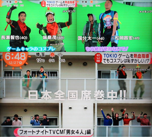 『フォートナイト』×TOKIOの新テレビCMが12月28日より放送! TOKIOの4人がゲームキャラのコスプレ姿で熱血指導『フォートナイト』TOKIOを起用した新CMが12月28日より全国放映。4人がゲームの楽しさを伝えるシーンに注目PR