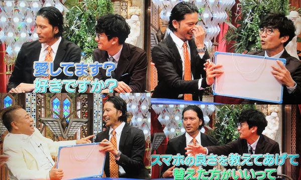 メントレも含め、初出演なんだっけ?リーダーや太一が一緒に出てるイメージがあるから、そんな感じがしないんだよね。なので、太一の接し方がゲスト扱いしてないような…。で、それに便乗する、というか、加担する智也っていう図が楽しい☆上目遣いの「愛してますか?」ヤバすぎ。仲良し夫婦の話は大好物だよね。太一のお金に関する発言、ちょっと最近は辟易ナンだけどな…。後輩にも、そういう発言多いよね。それを聴いてどうするの?自分だって、ってツッコまれる事になるだけなのにね。智也も書かせようと、あれこれ説得してたけど。【太一の沖縄話ももっと聴きたかったし、出川氏の話も、もっと普通に聴きたかったなぁ。大体、番組冒頭に、内容のダイジェストを先に流すのって、効果あるの!?時間を無駄にしてると思うんだけど…】ガラケーなのをツッコまれたマボに、便乗してスマホ乗換のプレッシャー与えてる3人。やっぱり不便なのよね!?それは最近、やりとりが増えてるから?(って事にしておこう)。鼻をポリポリ、顎もポリポリする智也が可愛い。