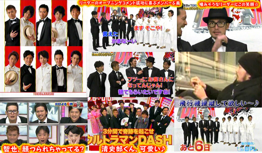 やっぱり流れましたね、番宣。オープニングの長いタイトルコールを無事に言えたリーダーに拍手喝采のTOKIO&嵐。(*'ー'*)ふふっ♪だけど、その後、マボにフリしたリーダー、やっぱり噛みそうになってて、智也のツボヒット。やっぱり、こうでなくちゃ!リーダーは。特番の内容が随分出てましたね。また水球をやるってことで、ビックリですよ。3回目だっけ?あれ、最初は楽しく見てられるんだけど、段々キツくなってくるのが、シンドイんだよね~。智也もコレでつられた顔になっちゃったのかな?智也の立ち会ったヤツは、飛行場でのトライ。操縦かん握ったのかな?去年だっけ?木村拓哉がブルーインパルスに乗ったヤツ、ちゃんとパイロットスーツ作ってもらってて、智也が着たら、チョーカッコイイんだろうなぁと、やって欲しかったのでした。元日まで6日なんだ。紅白の曲順も決まって、次々情報が更新。カウコン出演を達ちゃんは明言してたけど、ウチワは出るのか!?年々、カウコンの席が悪くなっていくので、TOKIOウオッチ、ハードになってくるなぁ。母の為にKinKiちゃんも見つけなきゃいけないし。