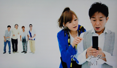 もう一つは、マボが走ってメンバーのところに駆けつけ「リーダーが女の子といるっ!」と報告。Lv1のリーダーが女の子にやり方を教わってるのね。そんな姿を遠巻きで見てる4人が可愛い♪あれ?GREEのCM、4種類って言ってたよね?もう4つ出ちゃったじゃん!走るTOKIOは??楽しみにしてる踊るTOKIOは~~?????