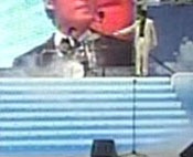 写真撮影が終わると、マイクがないので、渡辺アナのアナウンスにおじぎして、会場&周りに手を振って退場。智也は一番舞台袖に近いトコにいるのに拘らず、仲間さんや高島さん、渡さんを先に行かせ、徳重くんのお尻を叩き、ニコッと笑って何か喋りながら2人で一緒に袖へ行きました。ステージ後ろのほうでキャ~!という声が聞こえたので、テレ朝社屋まで歩いていったのかな??そしてスタッフが『スイカをどうぞ~!』といいながら何分の一くらいかなぁ?結構ボリュームあるスイカを客席に配り始める。それで土産袋の中にビニール袋があったのかぁ!!寒くてスイカも食べたくないくらいだったが、母は果物好きの父にお土産とばかりにお持ち帰り。こういうところが石原軍団ぽいね! この寒さで、私みたいにお断りする人も多いらしく、客席の外にいた人にも配り始めるスタッフ。残っても困るしねぇ!さすがに「カキ氷」は自粛したのね!テントにはシロップのビンがたくさん置いてあったけど…。このドラマ、撮影は終わっているけど、この時点でも未だ完成していないそうだ。智也曰く監督が腕によりをかけて編集作業をしてるそうなんで、楽しみにしていて下さいという事だ。確かにダイジェスト版を見ると映画みたいだもんね。こうやってドラマのイベントをするのも、「ムコ殿」とか、ドラマ内で使用するシーン撮影目的でしたりするのはあるのかもしれないけど、あまり例がないよね?テレ朝開局45周年記念ドラマだから、テレ朝も、石原プロも力を入れてるんだなぁと実感。これからも完成披露とか、番宣が多くなるんじゃないかと期待大!!