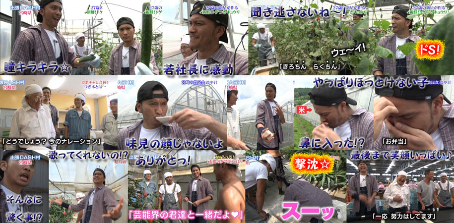ヒガシと対決は3回目だっけ?今回は満を持して(?)リーダー登場。戦力としてどうなの?と思ったけど、見事豚ロデオでは大活躍!そしてシュールストレミングでも、臭い汁を先輩に引っ掛けるというナイスアシスト!?で戦意喪失させた?マジギレしたヒガシに、スミマセン!スミマセン!と笑顔で謝るリーダーが可愛い~!この笑顔サイコー☆次回も智也がバイトに頑張るんだね~。またまた太一と一緒にニュルニュルと格闘?大変そうだけど、きっと楽しい内容になってるね♪…というか、番組先行申込み番号を固唾を飲んで待ってる状態じゃないことを祈ってます…!