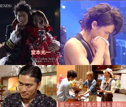 少年倶楽部プレミアム・未公開トーク。この番組はホントに未公開を長めにOAしてくれるから、嬉し~い!光一とTOKIOは合うっていうのは、ジャニさん、お見通しだったんだ。そういえば、ジャニさん、追突事故だそうで。達ちゃん、アイサイト搭載車を寄贈しておけばよかったのに!ま、もう自分で運転しないって事だから。というか、自分で運転するんだって事にビックリしましたが、大きな怪我もなくてヨカッタです。よっぽどのプライベート???話がそれましたが。光一がSHOCK毎公演、ビデオチェックしてるのにも驚きました。TOKIOは、毎公演はチェックしてないよね!?リーダーがビデオチェックする話は聞いたことあるけど、それでも毎公演じゃなかったはず。この手の話が出ると、映像あるならDVD出せ~!っていつも叫びますけど。J-Friends映像、何度見てもいいわぁ~♪この2ショットはナニしてても絵になる。エンディングの光一が可愛くて、ついキャプチャ。この子は意図せずに仕草がイチイチ可愛いから参るね!タキツバの収録は、9月4日?大体第一火曜だもんね、収録。V6剛の話も、本編でも十分興味深かったけど、未公開も、聴きごたえあるね。この番組を通して、印象変わった子、たくさんいる!そしてやっぱり、我らが智也ですよ!智也の気持ちを、本人の口から聴くことが出来て、ホントにホントに嬉しくて、太一に、番組に感謝ですっ!!後輩とのセッションの話、智也が歌えばTOKIOになるって思ってたけど、やっぱり意図してたんだ、それもかなり強い気持ちを持って。ここらへんはお芝居と一緒なのかも。誰がやってもいい役じゃなくて、長瀬智也だから、に拘ること。太一が「説得力が出てきましたね、あなた」ってテレながら言ってたけど、そう!そこかも知れない、一番の違い。だからこそ、LIVEで伝わってくる気持ちが、こっちの気持ちも揺さぶるんだな。だから、年々LIVEがとてもいいんだよね。太一の今後について、問い詰める(?)智也のこの表情、ヤバい!