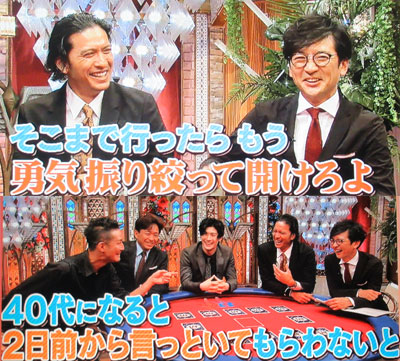 『ジャニーズの長瀬くんと岡田准一くんが出てて、やっぱりジャニーズのトップスター2人ですからね、ジャニーズの持ち駒っていうのも、凄いなぁって思いながら。ナンだろうなぁ、不思議な、長瀬くんなんかも、役者としての持ち味っていうのは、スゴいし、そういったモノを、宮藤さんがちゃんと読み取って、書いてくれたっていう部分がいっぱいあると思うんですね。面白かったなぁ~。あの、仕事をやってる時、あぁいう若い武器と、ナンか、交流できたっていうのも、やっぱりスゴい刺激になりましたね』『最近の感性の優れた俳優さんを観てると心強いなぁと思いますよ。楽しみだね~。これから役者出来なくなっても、そういう人たちが活躍する作品を観られるなぁって思ったら、ちょっと、まだ、ナンかね、頑張って、生きてみたいなっていう気持ちを持つんじゃないかな』
