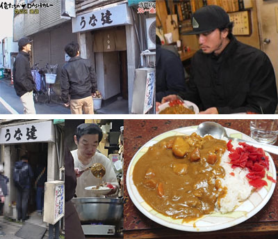ようやく「金カレー」行って来れました。開店20分前に到着すると、既に男性ばかり15人以上が待機。11時半になり、入店。階段を下りていくと、正面に写真が貼ってあって、DASHの写真発見。だけど、狭いし、続々席へ案内されていくので、撮影断念。カウンター席から埋まっていって、残念ながら、お座敷へ通されて。どんどん客が入っていって、落ち着いたら、注文訊かれて。男性でも「並」注文する人が結構いるし、トッピングに半熟卵や生卵を頼んでたり。めっちゃ体格のいい数人が特盛頼んでた(お相撲さんが祝杯するような盃(?)くらいありそうな大きなモノでビックリ!)。で、出て来たカレー、ジャガイモやニンジンが大き目で、ホントに家庭で作るようなビジュアル。結構、スパイシーで、食べ終わる頃には鼻の通りが良くなるくらい、温まります。でも、残念ながら、智也が言い当てた隠し味、何も感じる事が出来ませんでした。美味しかったけど、混雑してるし、ゆっくりは出来ないので、再訪は難しいかなぁ~。