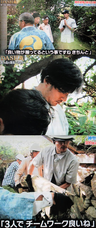 今までだったら、こういう時には、待ってました!と棟梁が本領発揮なんだろうけど、不在の今、それでも、成し遂げようとする、しなければならないという覚悟を感じて、苦しい。マボがいなくても、お祓いは、ちゃんと4人の名前をあげるんだね。今回、2011年のサラーッと、少し前のサラーッを観れてラッキー☆R形状に食いつく智也と太一。やっぱり2人は似てるね~。瓦礫撤去、リーダーや太一は長袖のシャツ姿なのに、智也が珍しく半袖。こういう木材を扱う時、それも林の中でという際に、腕が出ているのは、ヒヤヒヤしちゃうんですよ、流しそうめん作りの際の、竹割りで大怪我して以来。衣装かも知れないけど、ホント、安全面には、細心の配慮をしてください!運び出す際のイニシアチブは智也が取ってる?リーダー、喋った??新たな作業が増えてしまったのね…(;-_-) =3 フゥ…。