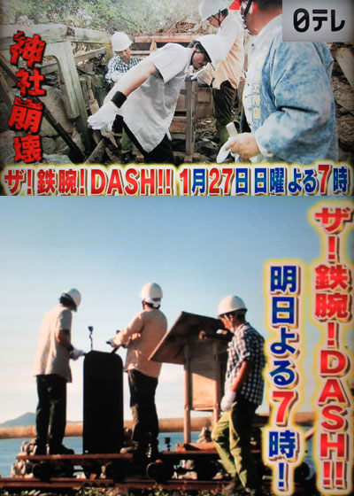 先週の予告やTV誌が初モノ奪取ばかりだったので、不安でしたが、DASH島にメンバー全員登場なのかな?予告映像では3人しか確認出来ないけど、TV誌情報では「4人で」ってなってるからね。上陸時にツインタワーで見つけたんだよね、この神社。夏頃の撮影のようだけど、年内に修復しているなら、今年は悪い事、起きないよね…。
